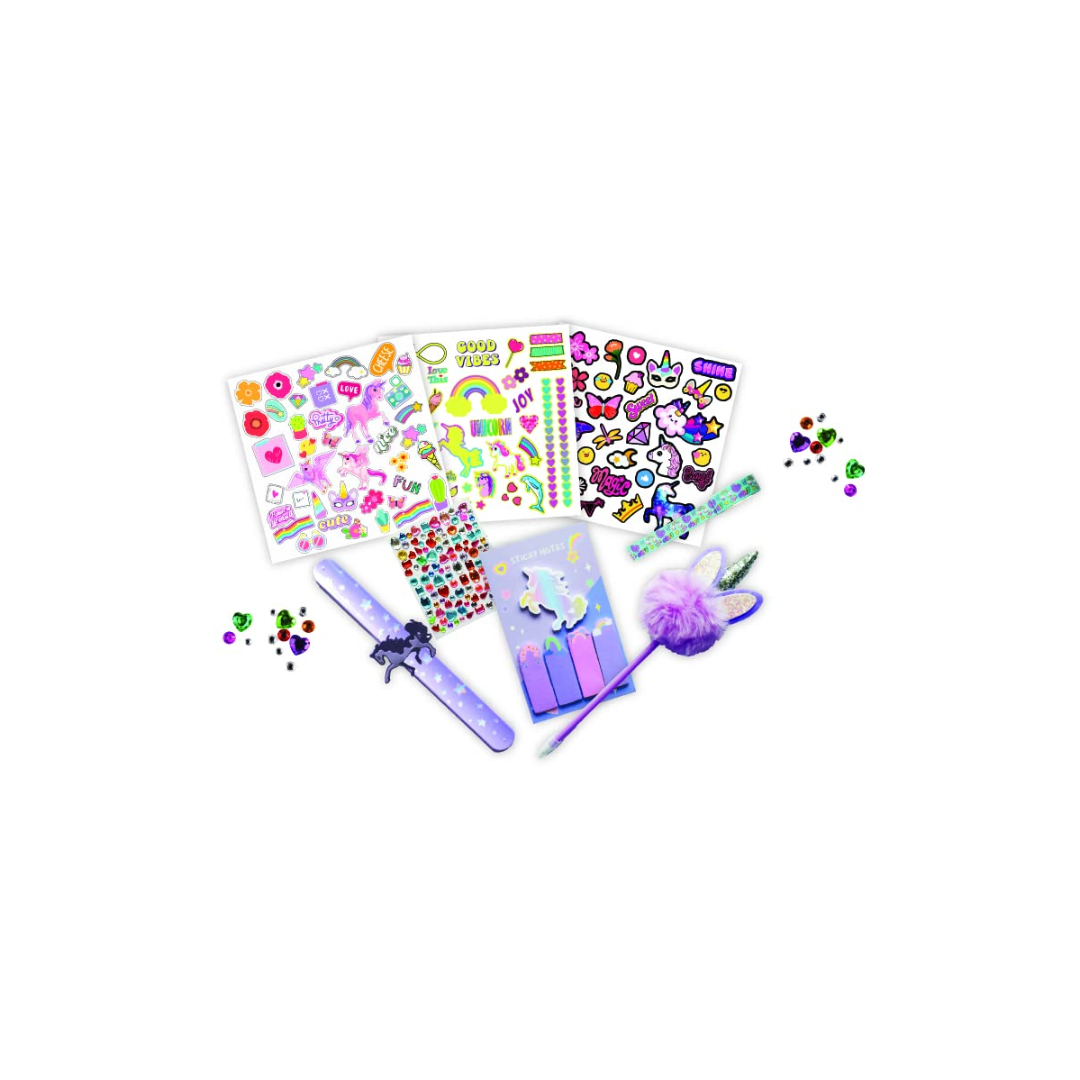 - क्या शामिल है: 40 बेसिक स्टिकर, 42 अंधेरे में चमकने वाले स्टिकर, 30 होलोग्राफिक स्टिकर, 100+ जेम स्टिकर, 1 वाशी टेप, 1 यूनिकॉर्न पोम पोम पेन, 1 यूनिकॉर्न स्टिकी नोट्स और 1 यूनिकॉर्न स्लैप-बैंड।