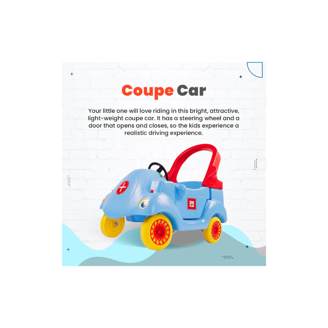आपके नन्हे-मुन्नों को इस चमकदार, आकर्षक, हल्के वजन वाली कूप कार की सवारी करना पसंद आएगा। इसमें एक स्टीयरिंग व्हील और एक दरवाजा है जो खुलता और बंद होता है, इसलिए बच्चों को यथार्थवादी ड्राइविंग अनुभव मिलता है। यह मोटर कौशल और कल्पना को विकसित करने में भी मदद करता है। कम पढ़ें प्रमुख विशेषताएं • सामग्री : बच्चों के लिए कूप कार गैर विषैले, हानिरहित, उच्च गुणवत्ता वाले और टिकाऊ प्लास्टिक से बनी है। चोट से बचाने के लिए खिलौना गोल किनारों के साथ आता है।• दीर्घायु : यह कूप कार अपनी गुणवत्ता के लिए एक उत्कृष्ट खिलौना है और 100% भारत में निर्मित है।• मनोरंजक : इस सरल और सुरक्षित कूप कार के साथ, आपका बच्चा इनडोर और आउटडोर दोनों सवारी का आनंद ले सकता है, जिससे उनकी कल्पना और मोटर कौशल विकसित करने में मदद मिलेगी।• कौशल विकसित करें : ऐसे कई तरीके हैं जिनसे बच्चे को उनके महीन और सकल मोटर (आंदोलन) कौशल दोनों को विकसित करने में मदद मिल सकती खिलौना सुरक्षित और टिकाऊ होने के साथ-साथ मज़ेदार और शैक्षिक भी है, जो निस्संदेह खुशी लाएगा।• इनडोर और आउटडोर : बच्चे किसी भी समय और किसी भी स्थान पर खेल सकते हैं क्योंकि खिलौना हल्का है और इनडोर या बाहर परिवहन के लिए आसान है।• उत्पाद विनिर्देश : माप 82.2x51x73.5 सेमी। 1-2 साल की उम्र के लिए।