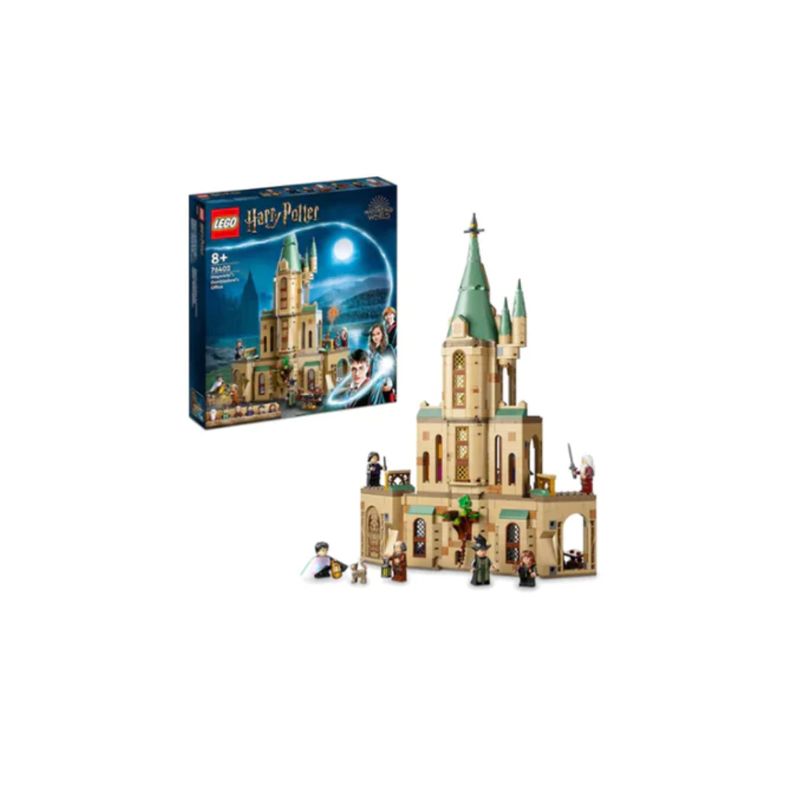 ;4 levels of Hogwarts magic – LEGO Harry Potter Hogwarts: Dumbledore’s Office (76402) is packed with features to inspire the imaginations of any young witch or wizard;Popular characters – The set includes 6 minifigures: Harry Potter, Hermione Granger, Albus Dumbledore, Severus Snape, Argus Filch and Madam Pince;Authentic adventures – Familiar rooms, each filled with prominent items from the films, including Harry's Invisibility Cloak, the Pensieve, the Sword of Gryffindor, the Sorting Hat and baby Fawkes;A treat for true fans – Conjure up a magical birthday, Christmas or any-day gift for a Harry Potter enthusiast aged 8 and up;Many ways to play – Measuring over 39 cm (15.5 in.) high, 19 cm (7.5 in.) wide and 9 cm (3.5 in.) deep, this multi-level set combines several areas, each filled with magical ideas and inspiration;;