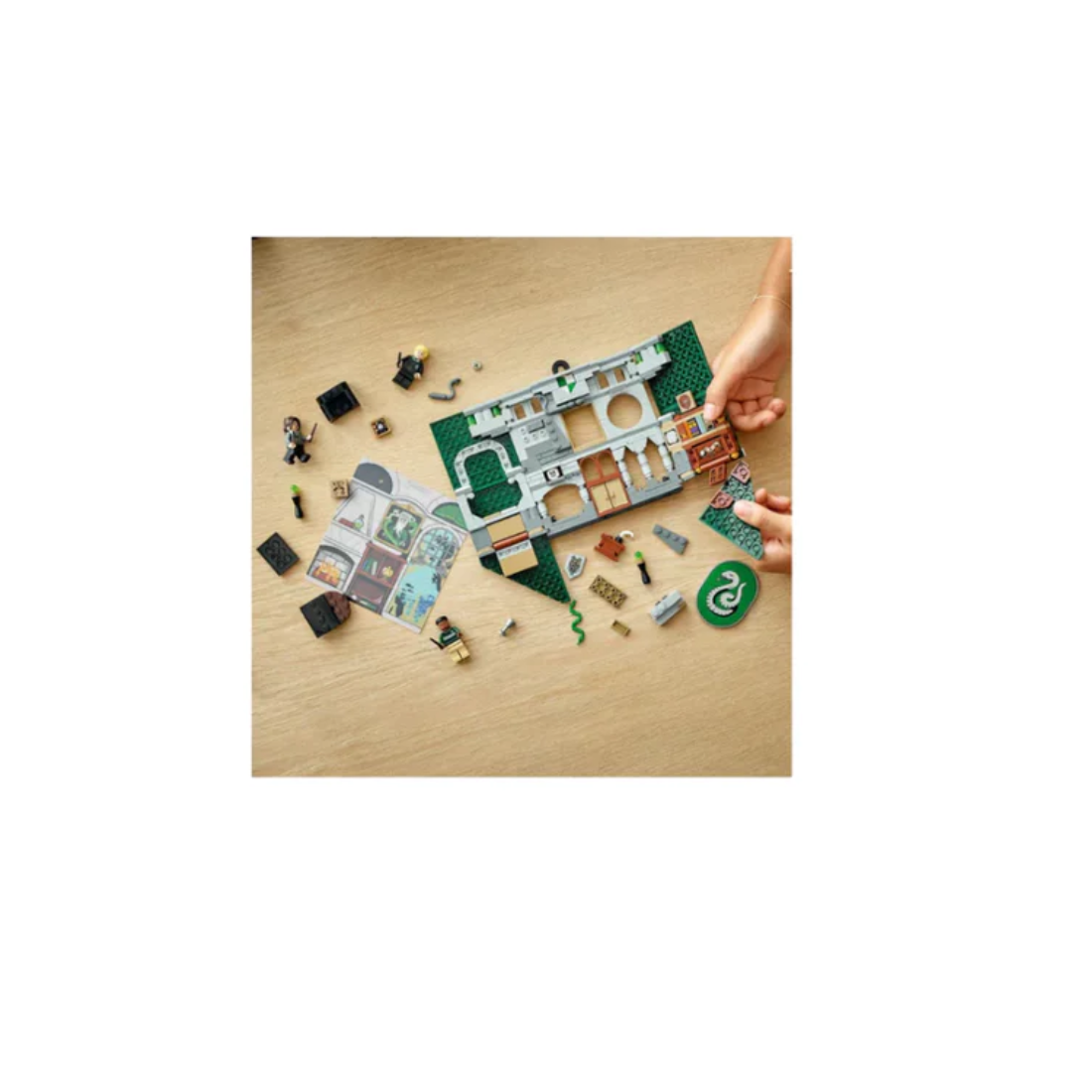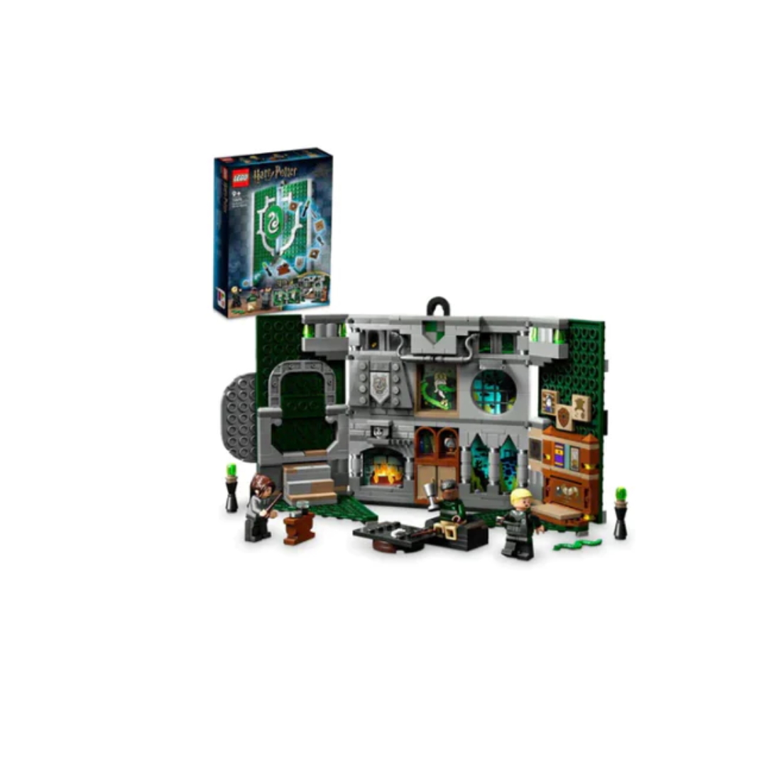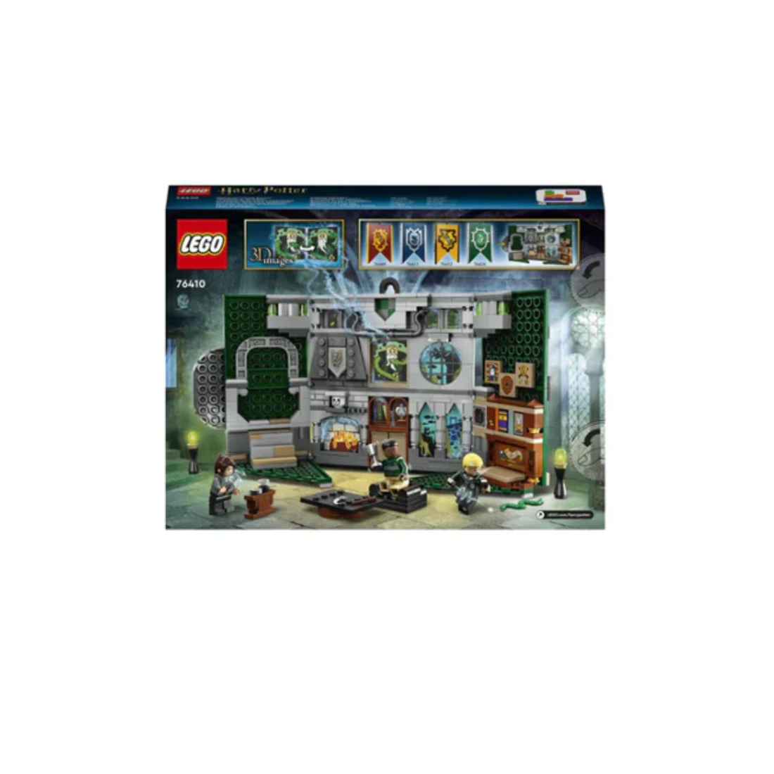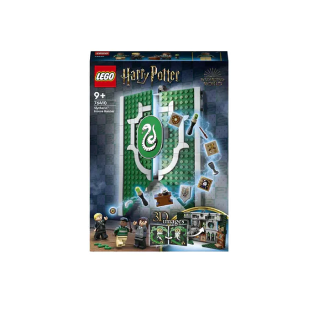 ;LEGO Harry Potter Slytherin House Banner (76410) – Kids can show their allegiance to Slytherin with this buildable banner. Hang it up or open it for play in the detailed common room;3 Slytherin house characters with accessories for role play – Draco Malfoy, Pansy Parkinson and Blaise Zabini minifigures, plus Slytherin’s Locket and a snake element;Authentic details – The banner features the Slytherin house crest and opens to reveal the common room, featuring a table, sofa, 2 lamps,steps, and a cupboard that opens to reveal a secret message;3D effects – A lenticular backboard creates moving images of Black Lake underwater scenes through the window, a flickering fire in the fireplace, Salazar Slytherin’s serious/smiling face, and more;Fun everyday gift – Harry Potter fans aged 9 and over will be spellbound to receive this 349-piece buildable playset as a surprise treat, birthday present or Christmas gift;;